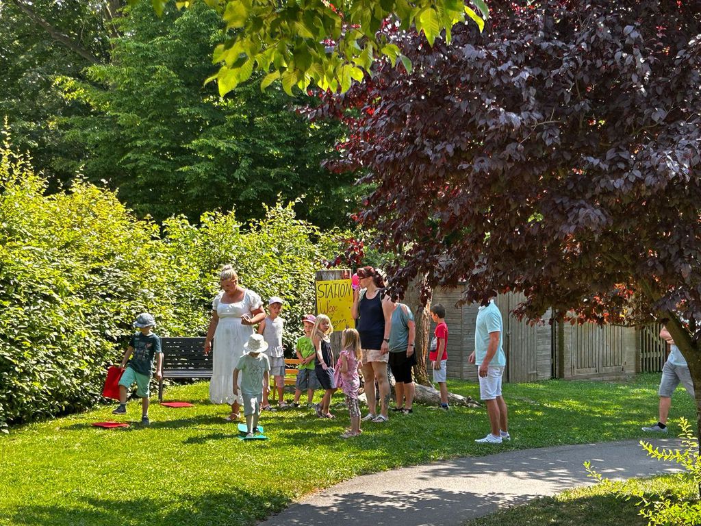 An lustigen Stationen konnten sich die Kinder bei Spielen ausprobieren, Gummistiefel wurden geworfen, Wege gelegt und Wasser um Hindernisse transportiert.